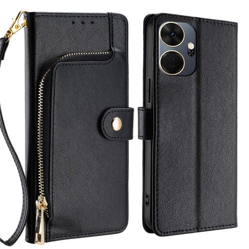 Funda de Cuero para Itel P55 + 4G con Bolsa y Cremallera (Negro)
