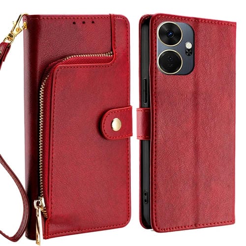 Funda de Cuero para Itel P55 + 4G con Bolsa y Cremallera (Rojo)