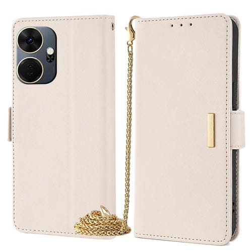 Funda de Cuero para Itel P55 + 4G con Cadena Cruzada (Blanco)