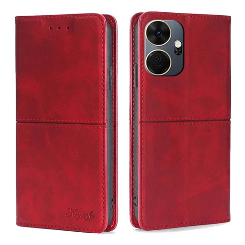 Funda de Cuero Magnético para Itel P55 + 4G con Textura de Vaca (Rojo)