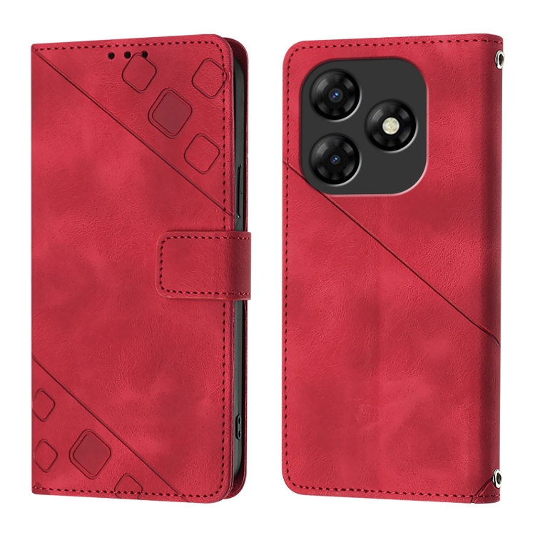 Funda de Cuero Skin Feel para Itel P55 4G en Relieve (Rojo)