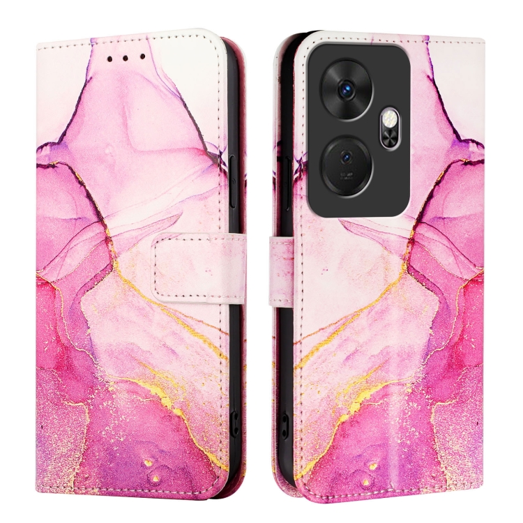 Funda para Itel P55 + Pt003 de Cuero con Tapa y Patrón de Mármol (Rosa, Morado y Dorado)