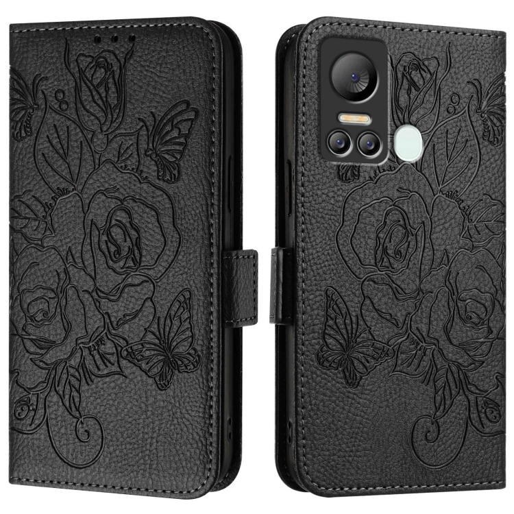 Estuche para Itel S18 de Cuero Antirrobo RFID con Rosa en Relieve (Negro)