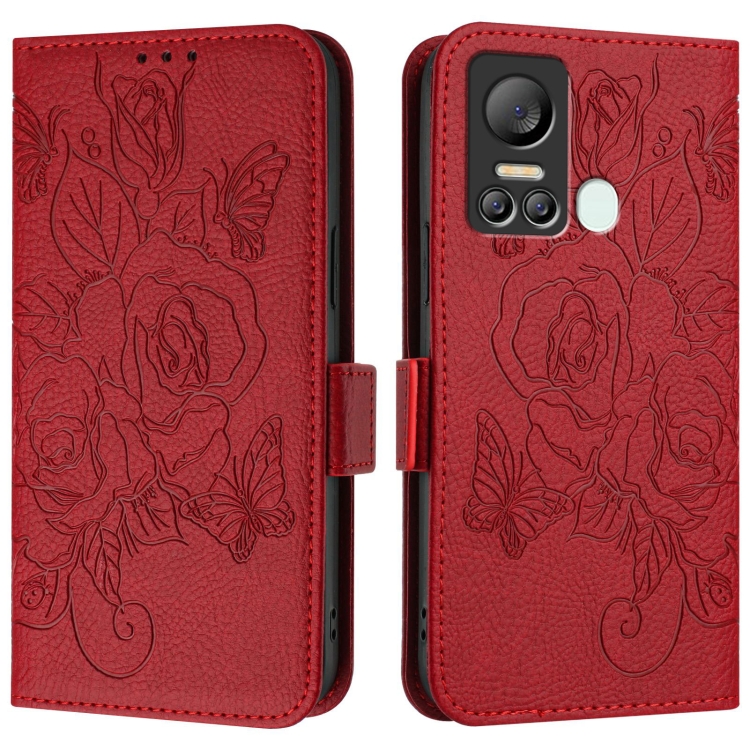Estuche para Itel S18 de Cuero Antirrobo RFID con Rosa en Relieve (Rojo)
