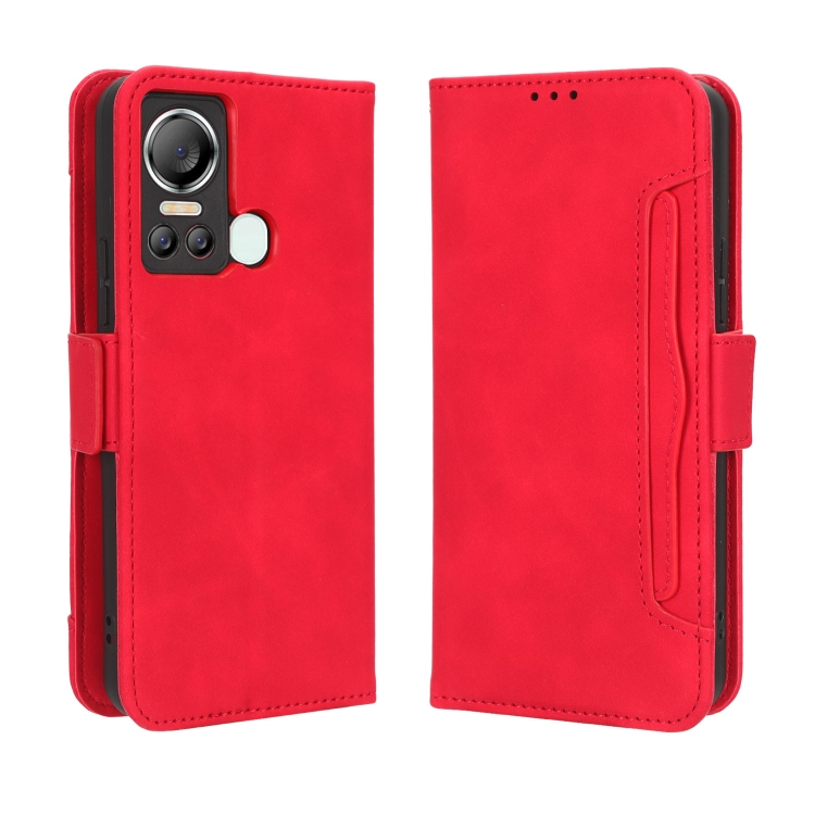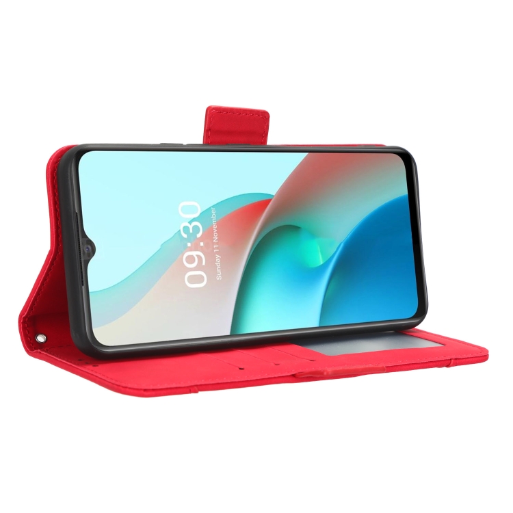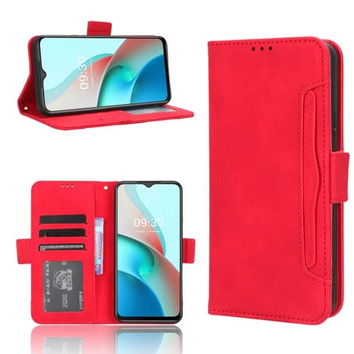 Funda de Cuero para Itel S18 S663L con Textura Becerro y Ranuras para Tarjetas (Rojo)
