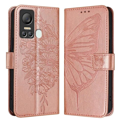 Funda para Itel S18 y Vision 5 de Cuero con Mariposa en Relieve (Oro Rosa)