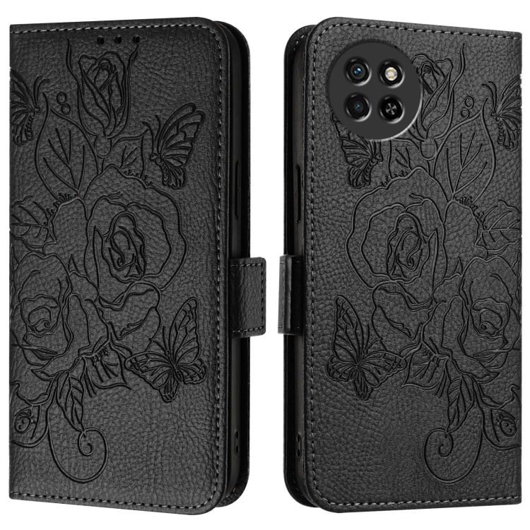 Estuche para Itel S23 de Cuero Antirrobo RFID con Rosa en Relieve (Negro)