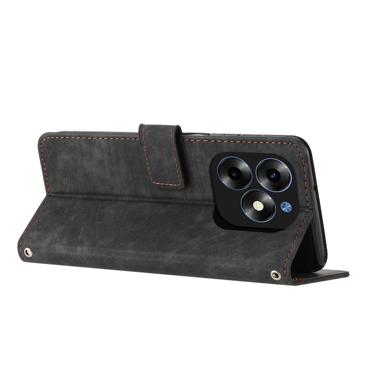 Estuche de Cuero para Itel S23 con Patrón de Rayas Skin Feel y Cordón (Negro)