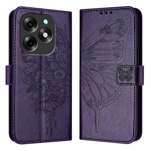 Funda de Cuero para Itel S23 con Mariposa en Relieve (Púrpura Oscuro)