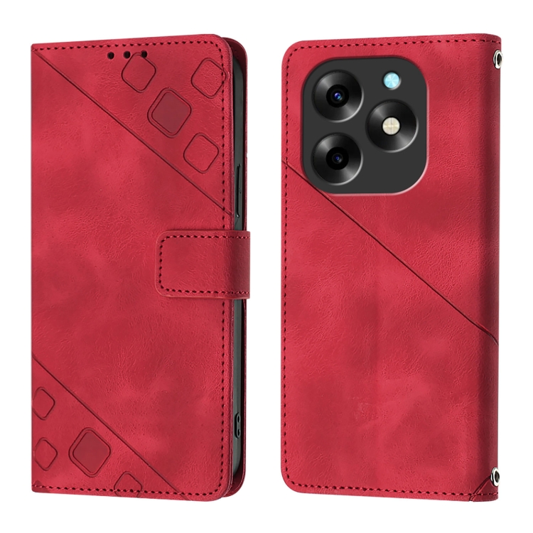 Funda de Cuero Skin Feel para Itel S23 con Relieve (Rojo)