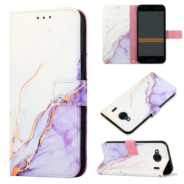 Funda de Cuero con Tapa para Kyocera Qua Phone Qx Kyv42 Pt003 Patrón Mármol (Blanco Púrpura)