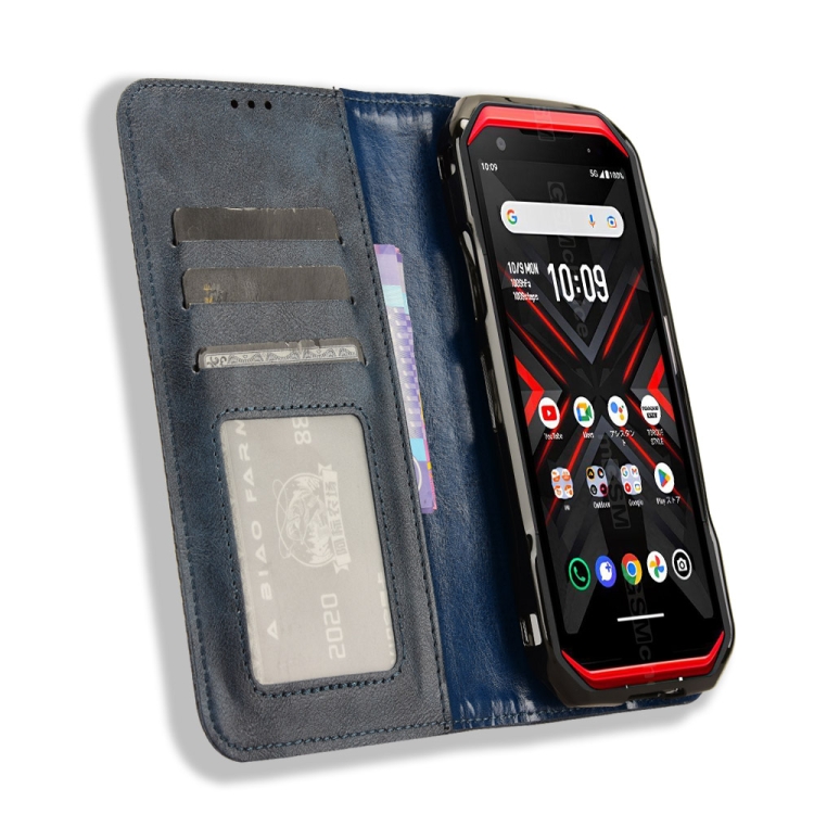 Funda para Kyocera Torque G06 Kyg03 Cuero Textura Retro Hebilla Magnética (Azul)