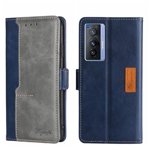 Para la Caja de Teléfono de Cuero de Hebilla Lateral de Color Vivo X70 de Contraste (Azul + Gris)