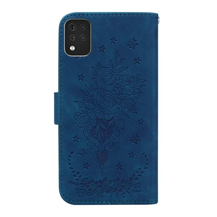 Caja de Cuero en Relieve Rose para LG K42 Butterfly (Azul)