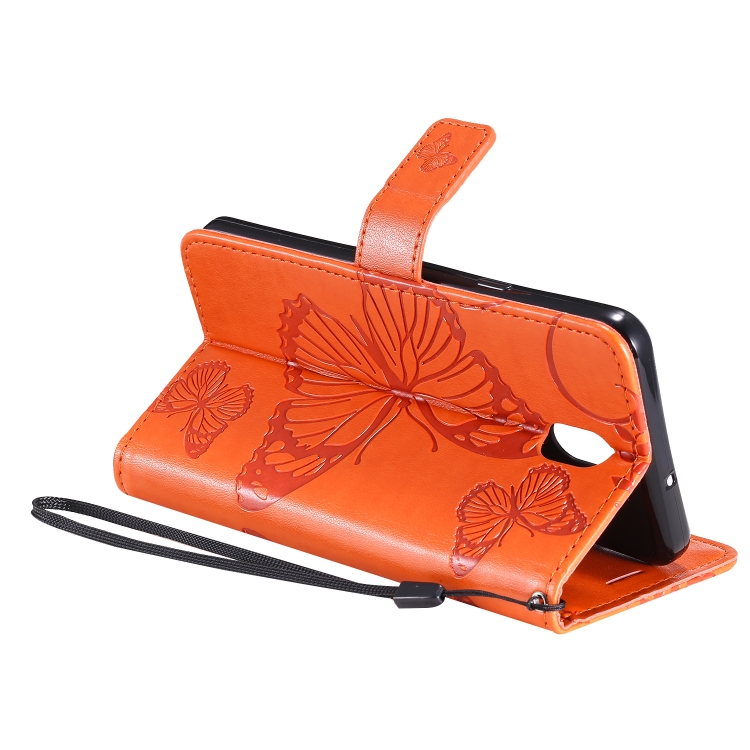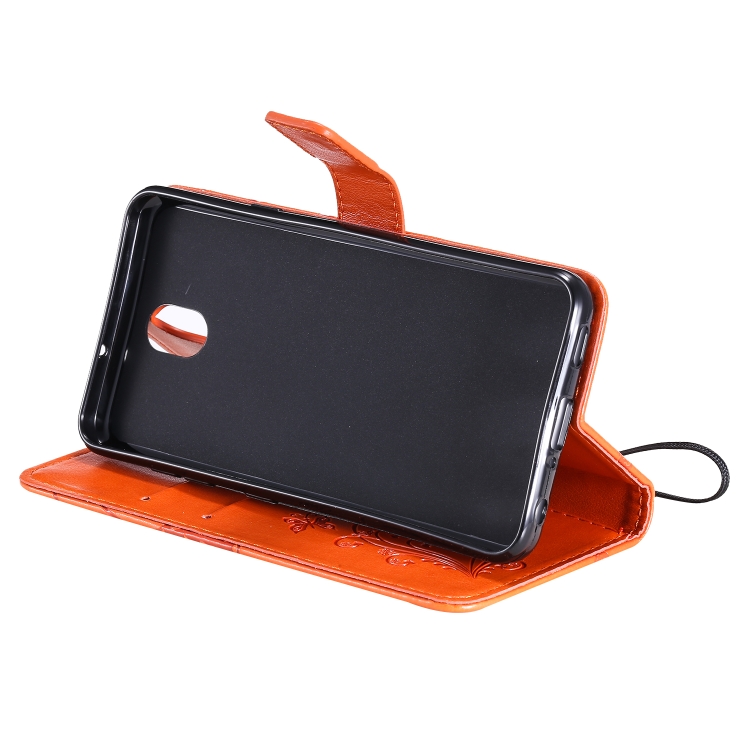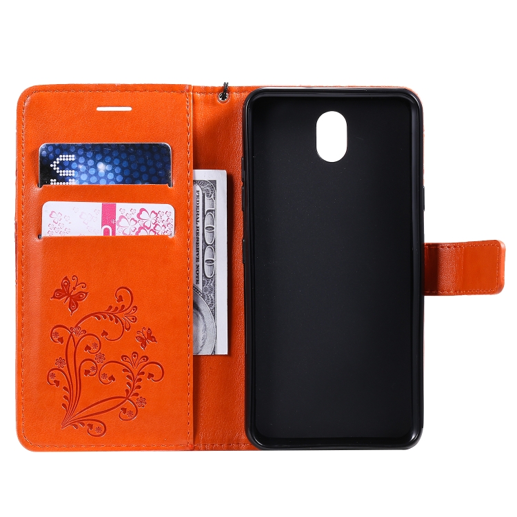 Estuche Cuero PU para LG K30 con Tapa Horizontal, Soporte, Ranuras para Tarjetas y Cordón (Naranja)