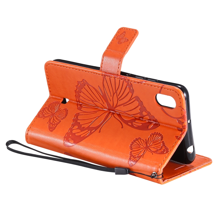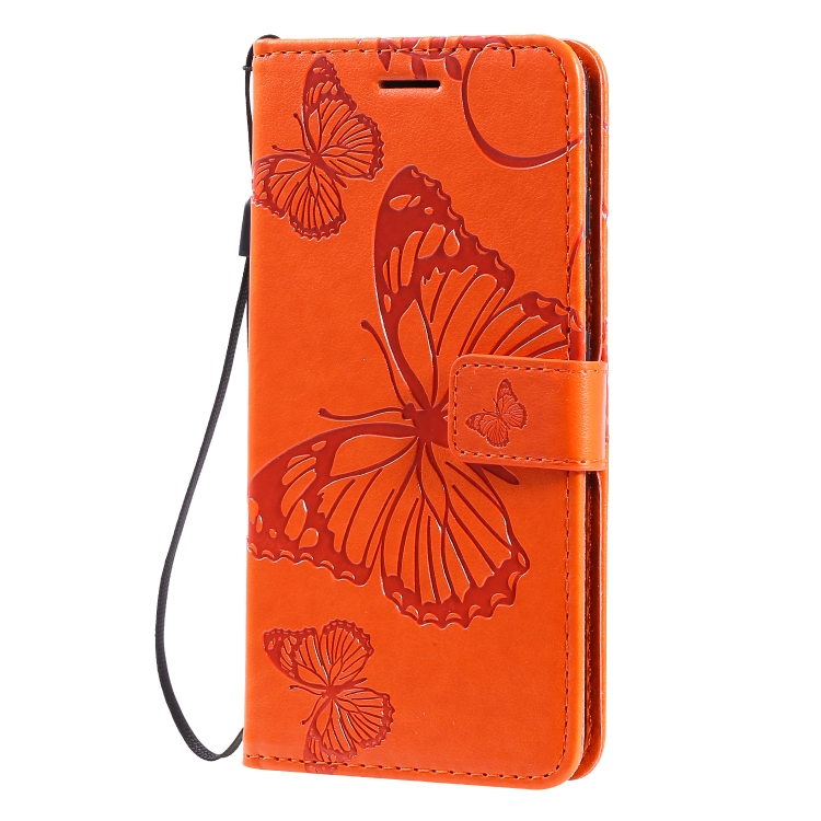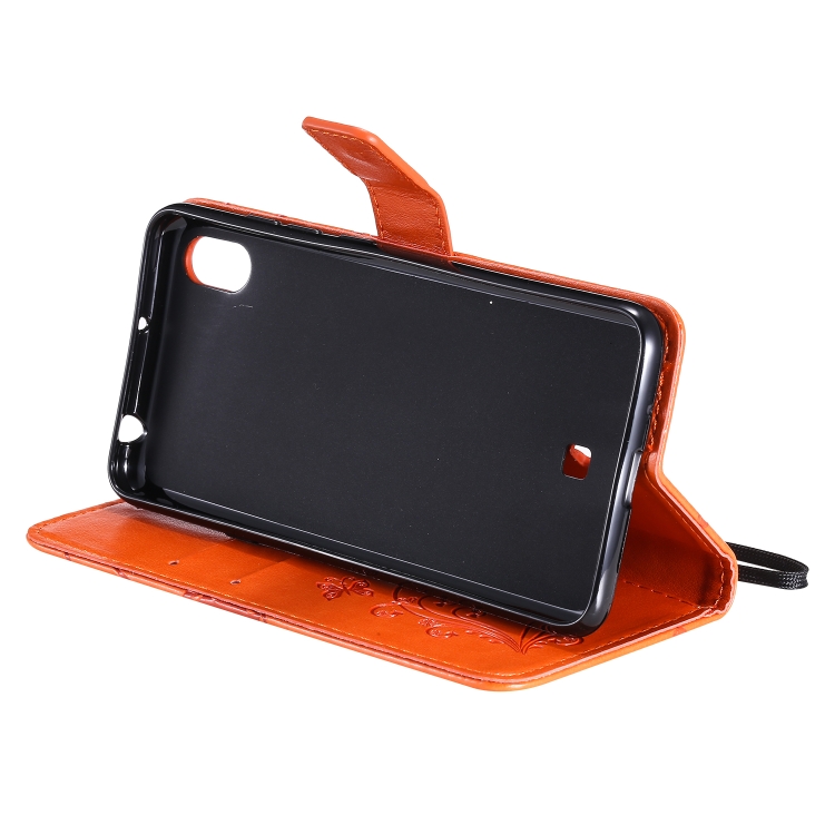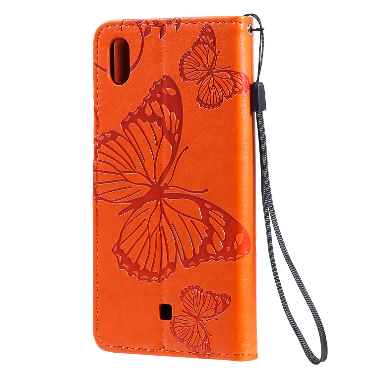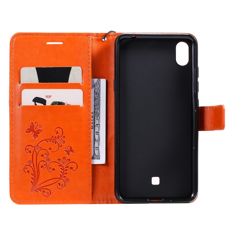 Estuche Cuero PU LG K40S Tapa Horizontal Mariposa Soporte Ranuras Tarjetas Billetera Cordón (Naranja)