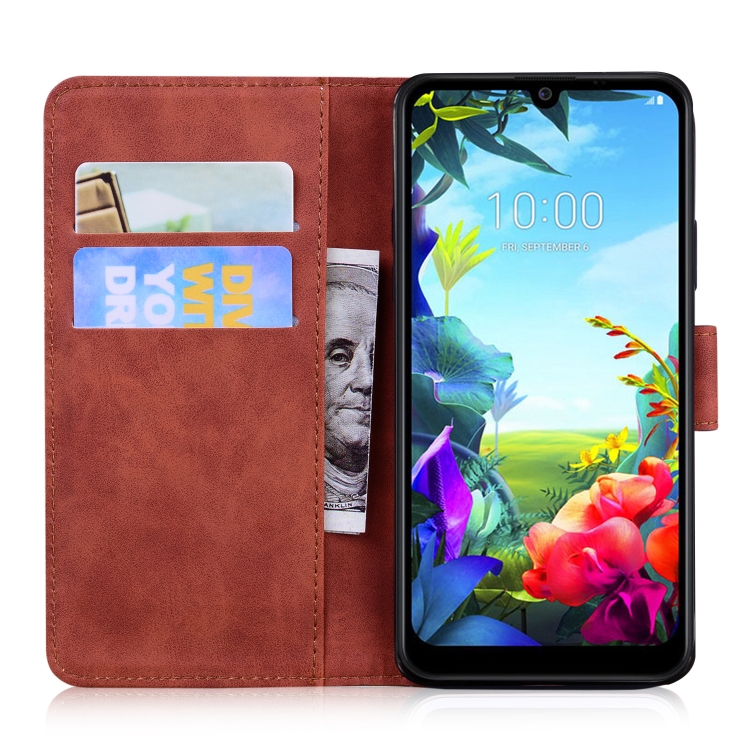 Funda de Cuero para LG K40S con Tapa Horizontal, Soporte, Ranuras para Tarjetas y Billetera (Marrón)