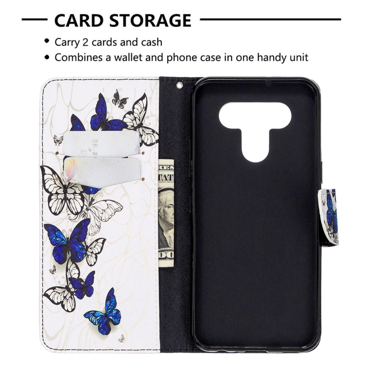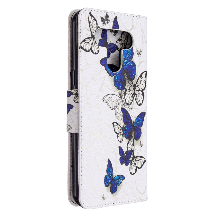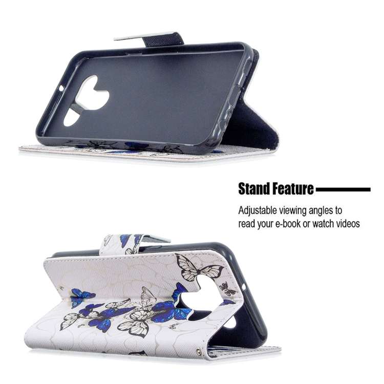 Estuche Cuero Abatible Horizontal LG K51 con Soporte, Ranuras y Billetera (Mariposas)