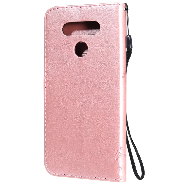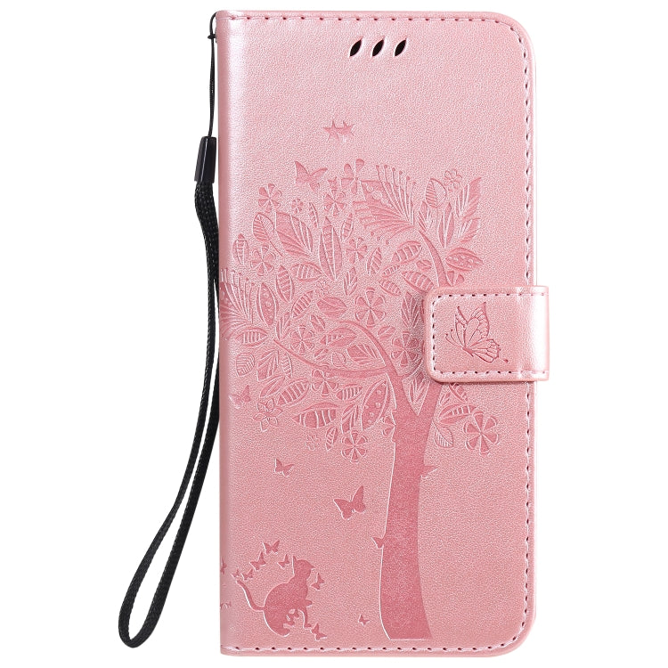 Funda de Cuero para LG K51 Tree & CAT con Tapa Horizontal, Soporte, Ranuras para Tarjetas y Cordón (Oro Rosa)