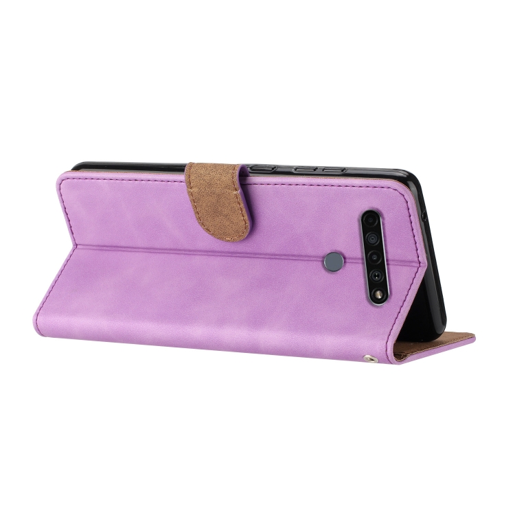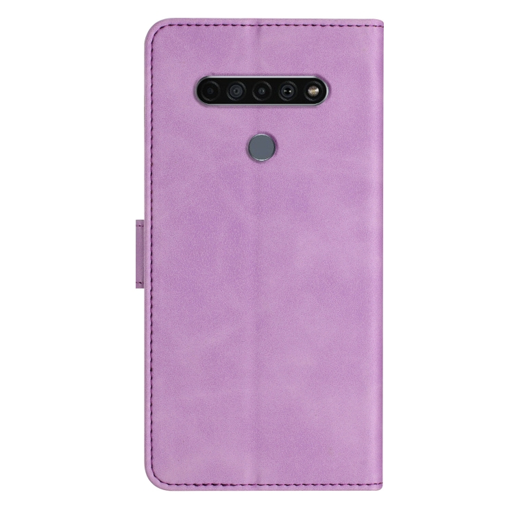 Funda de Cuero para LG K51S Seven Butterflies con Relieve (Púrpura)