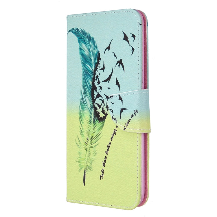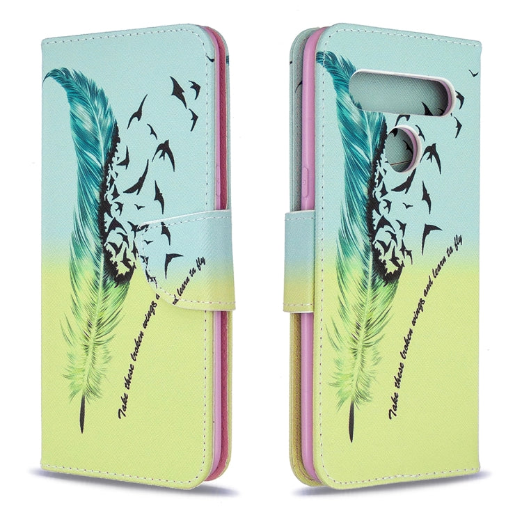 Estuche de Cuero Abatible Horizontal para LG K61 con Soporte, Ranuras para Tarjetas y Billetera (Pluma)