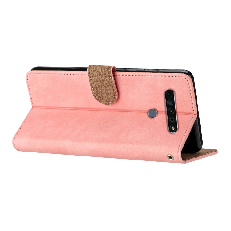 Funda de Cuero para LG K61 Seven Butterflies con Relieve (Rosa)