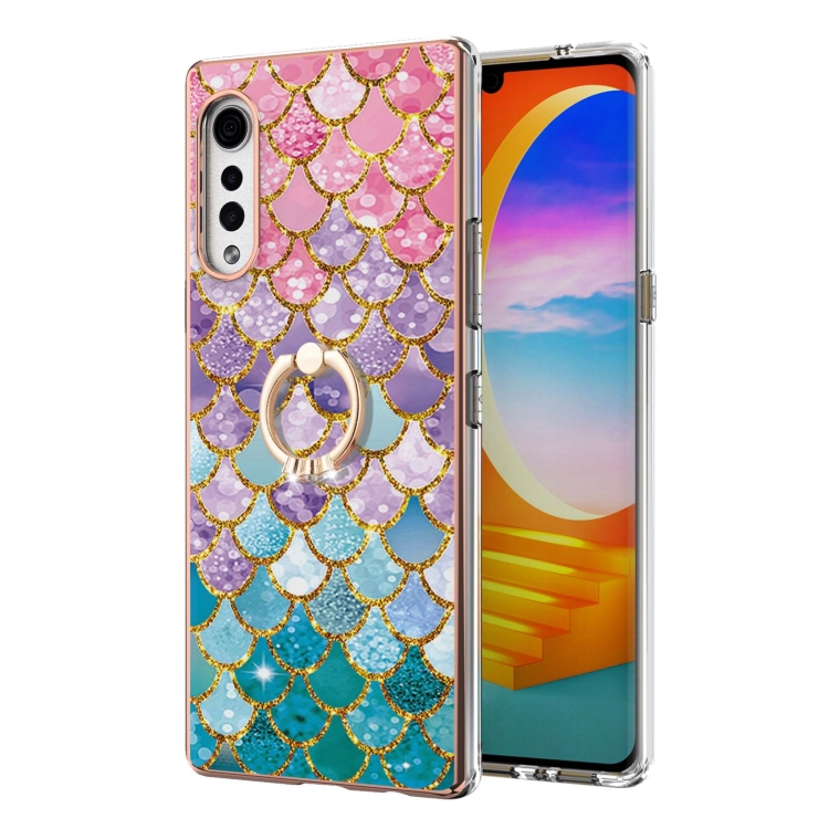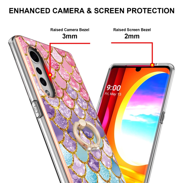 Funda TPU LG Velvet 4G Velvet 5G G9 con Patrón Galvanoplastia y Soporte Anillo (Escamas Coloridas)
