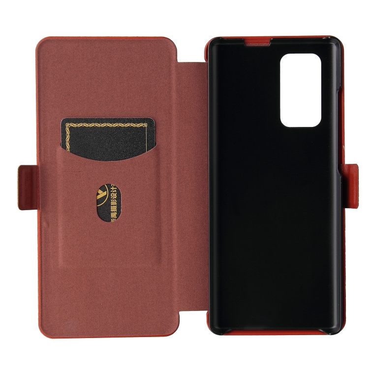 Funda para LG Wing 5G con Hebilla Textura Fibra de Carbono Flip Magnético TPU + PC Cuero PU Ranura Tarjeta (Marrón)