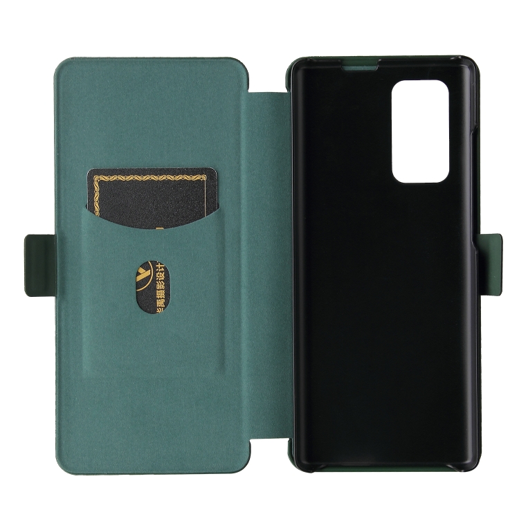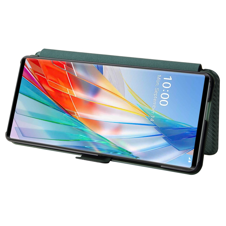 Funda para LG Wing 5G con Hebilla Textura Fibra de Carbono Flip Magnético TPU + PC Cuero PU Ranura Tarjeta (Verde)