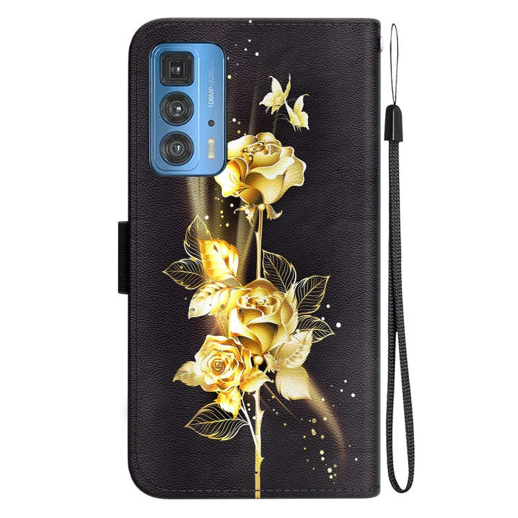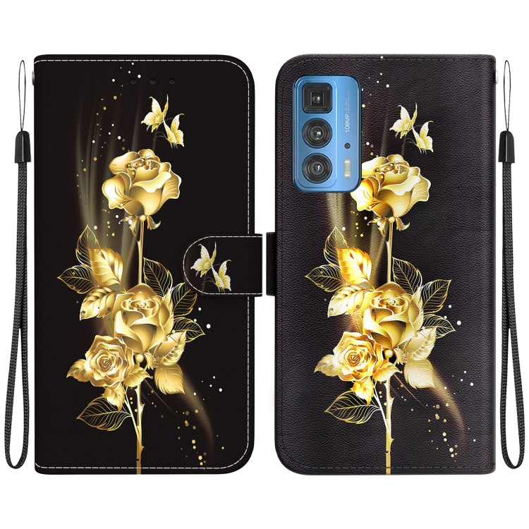 Funda de Cuero para Motorola Edge 20 Pro con Dibujo Coloreado y Textura de Cristal (Mariposa Dorada Rosa)