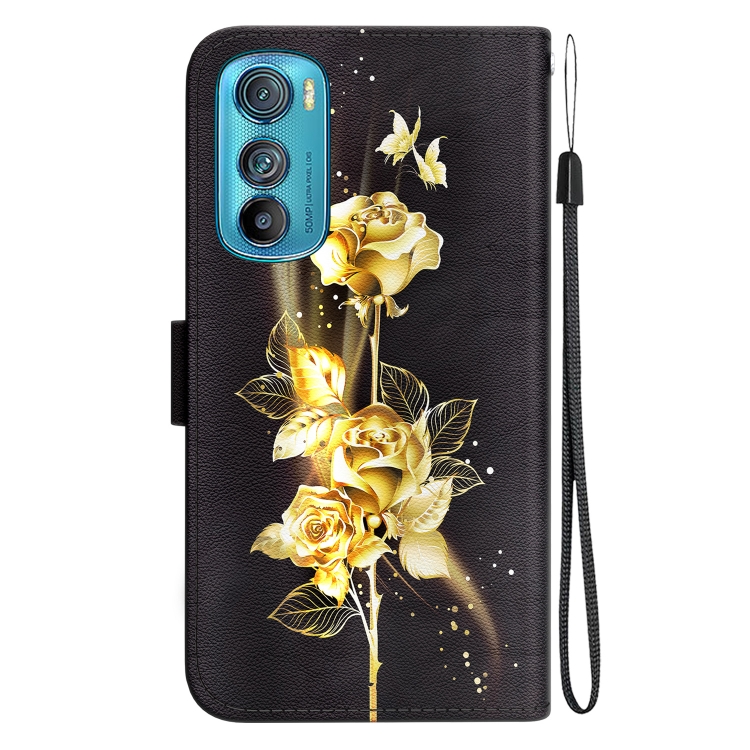 Funda de Cuero para Motorola Edge 30 con Dibujo Coloreado y Textura de Cristal (Mariposa Dorada Rosa)