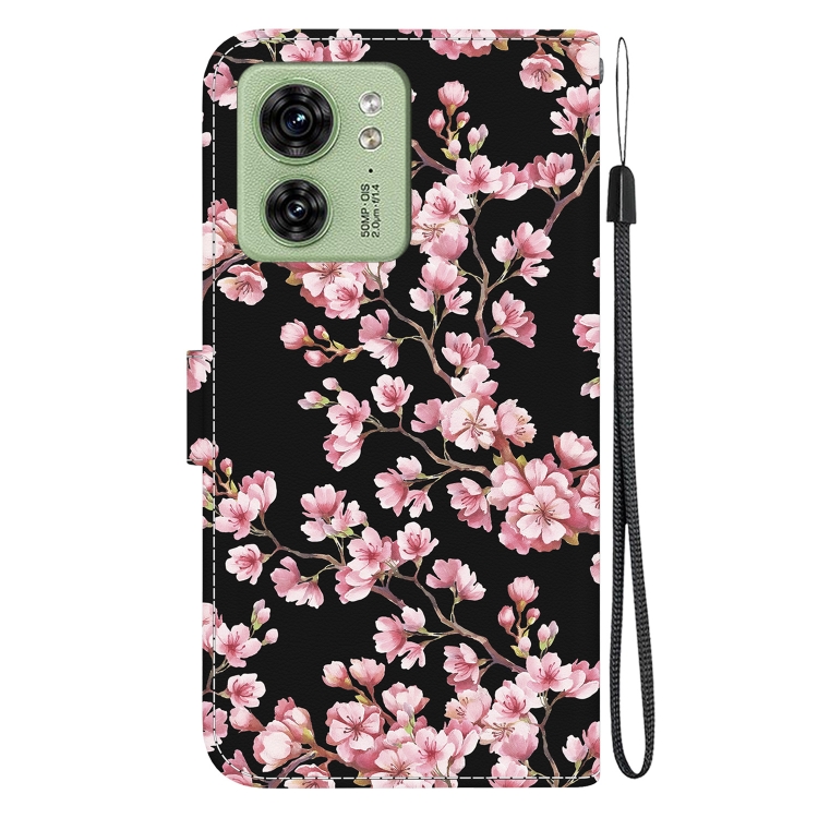 Funda de Cuero para Motorola Edge 40 con Dibujo Coloreado y Textura de Cristal (Flor de Ciruelo)