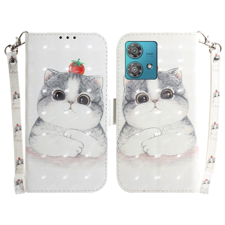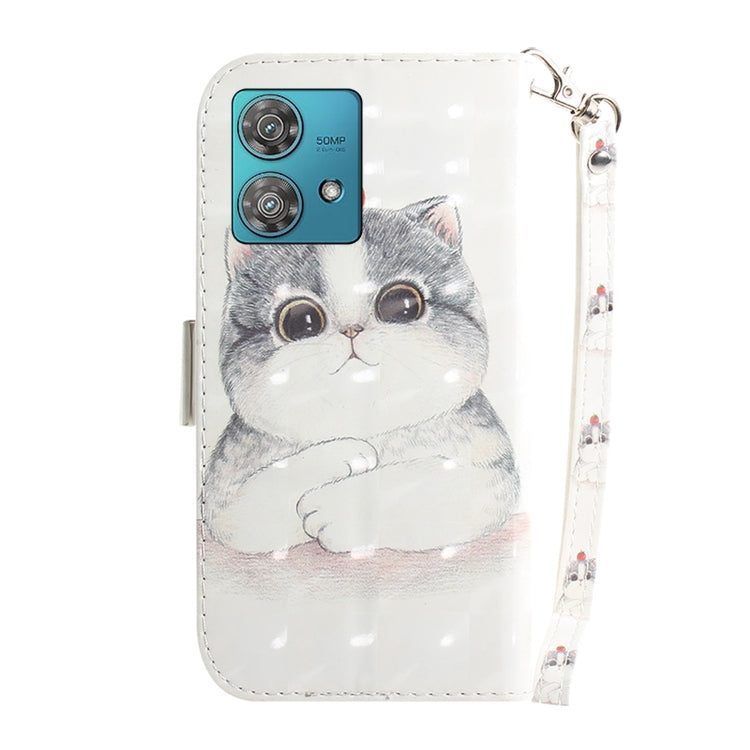 Funda de Cuero para Motorola Edge 40 Neo con Tapa Horizontal y Diseño 3D (Lindo Gato)