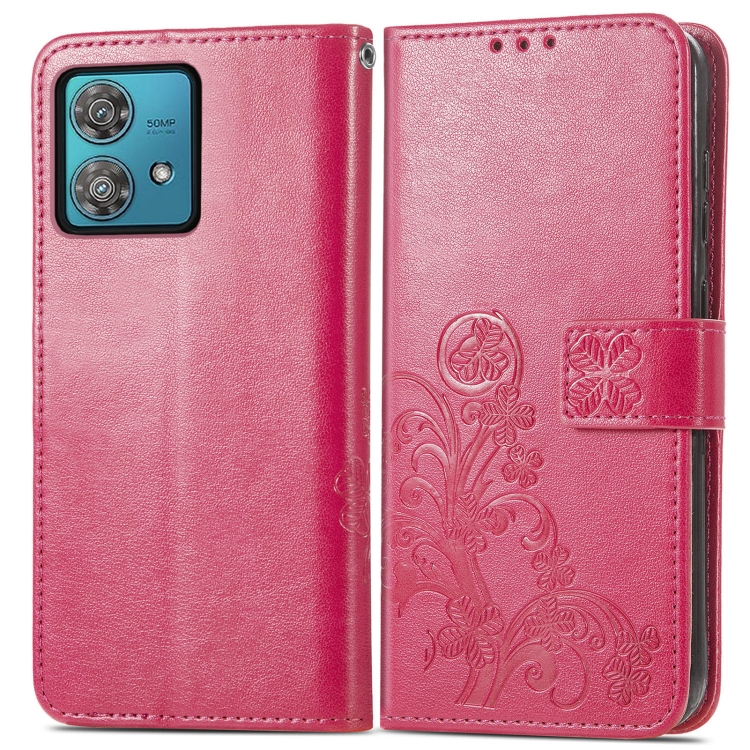 Funda de Cuero Repujado para Motorola Edge 40 Neo con Cierre de Cuatro Hojas (Magenta)