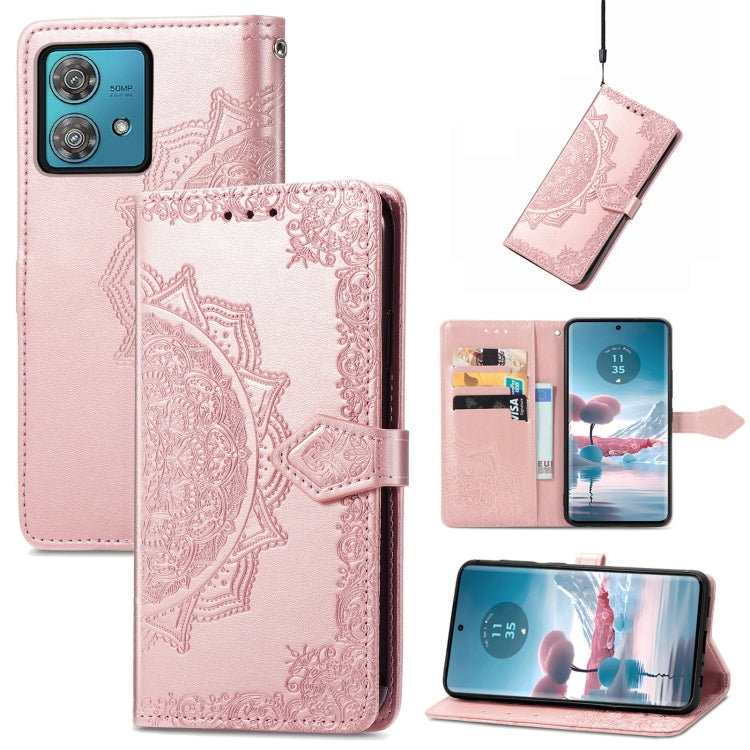 Funda para Motorola Edge 40 Neo de Cuero con Relieve de Flores Mandala (Oro Rosa)