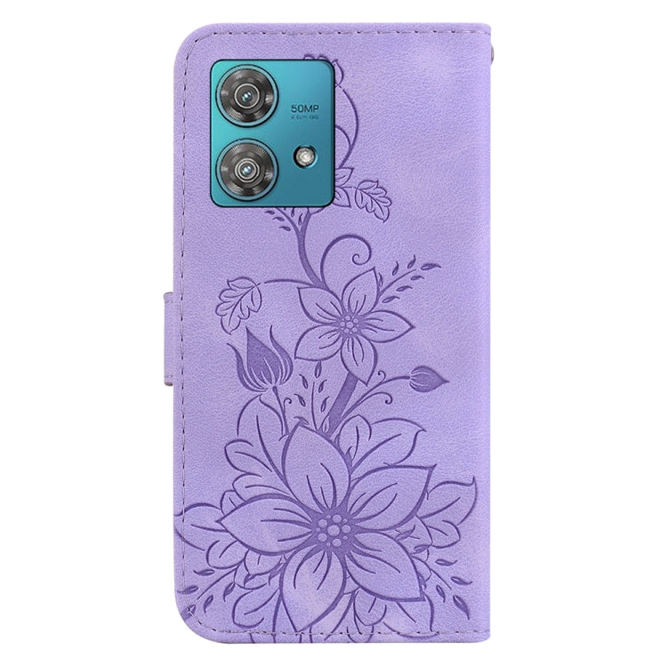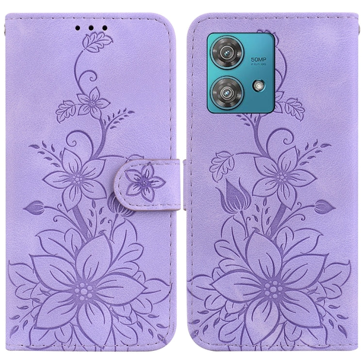 Funda de Cuero en Relieve para Motorola Edge 40 Neo Lily para Teléfono (Púrpura)