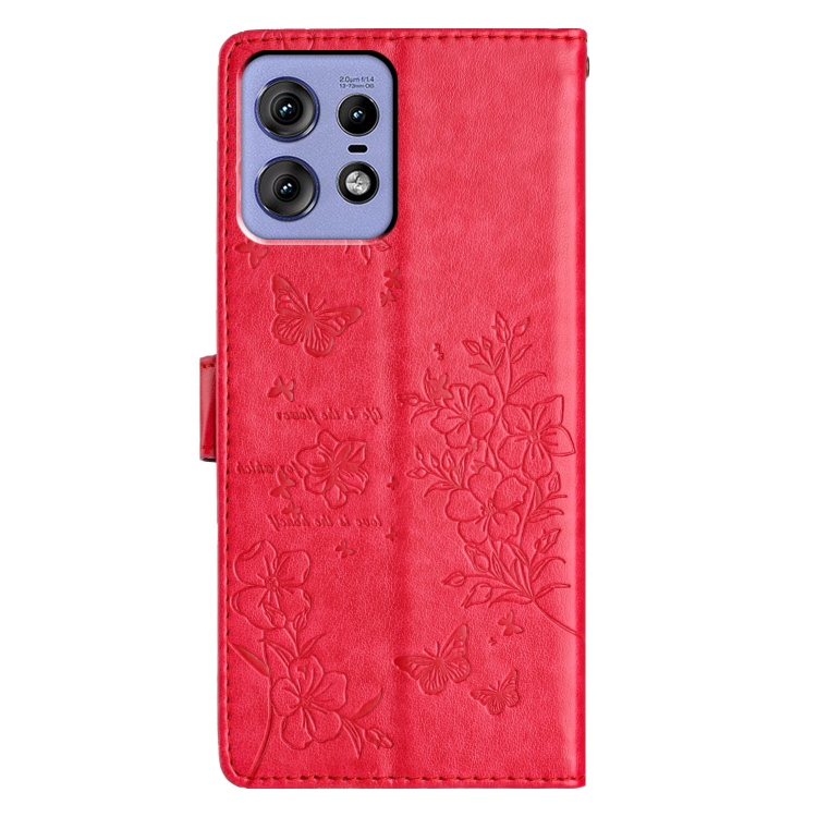 Funda de Cuero para Motorola Edge 50 Pro con Mariposas y Flores (Rojo)