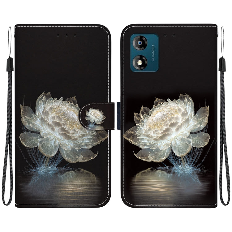 Estuche de Cuero para Motorola Moto E13 con Dibujo Coloreado y Textura de Cristal (Peonía de Cristal)