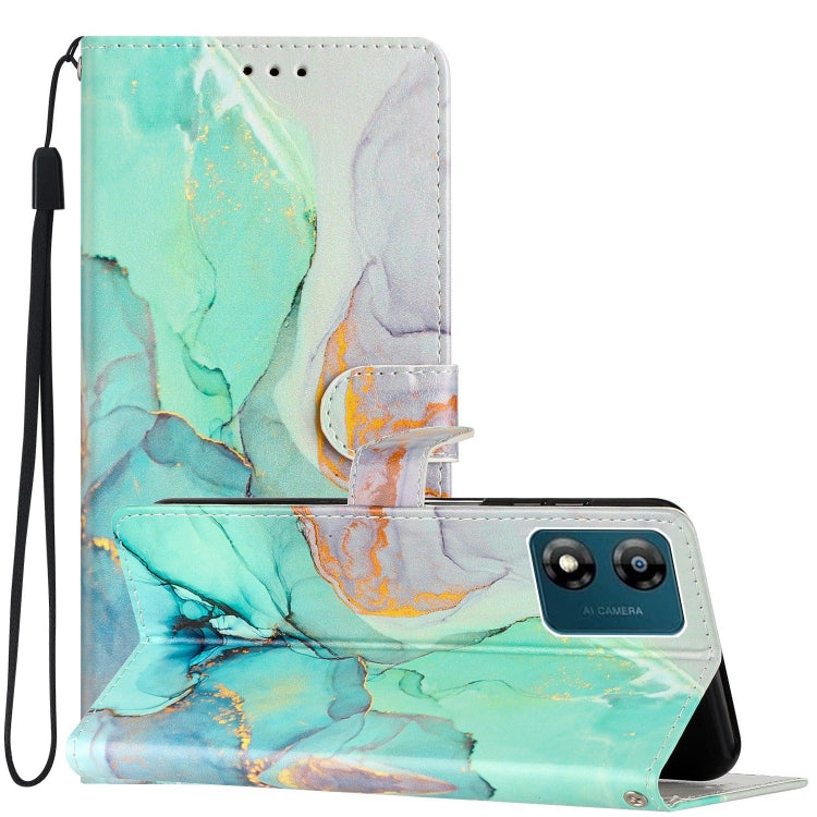 Estuche de Cuero para Motorola Moto E13 con Dibujo Coloreado Mármol Verde