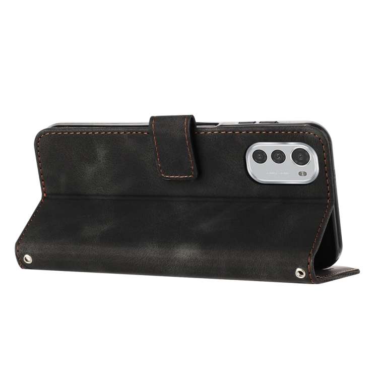 Funda de Cuero para Motorola Moto E32 Dream Triangle con Cordón (Negro)