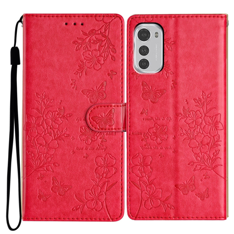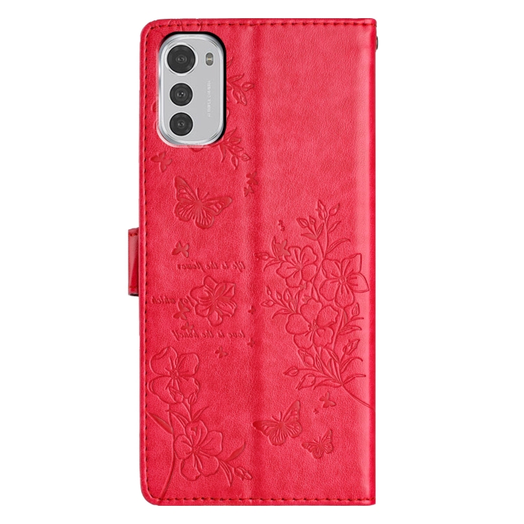 Funda de Cuero para Motorola Moto E32 con Mariposas y Flores (Rojo)