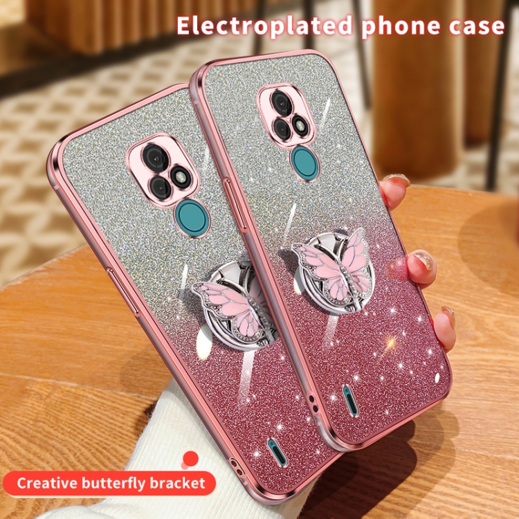 Funda para Motorola Moto E7 TPU con Soporte de Mariposa y Brillo Degradado (Negro)