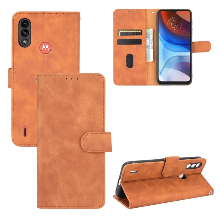 Para Motorola Moto E7 Power Color Sólido Siente Siente Hebilla Magnética Caja de cuero de la PU de la textura de la textura PU con el soporte y las tragamonedas y la cartera (marrón)