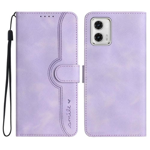 Funda de Cuero para Motorola Moto G 5G 2023 con Sensación de Piel y Patrón de Corazón (Púrpura)