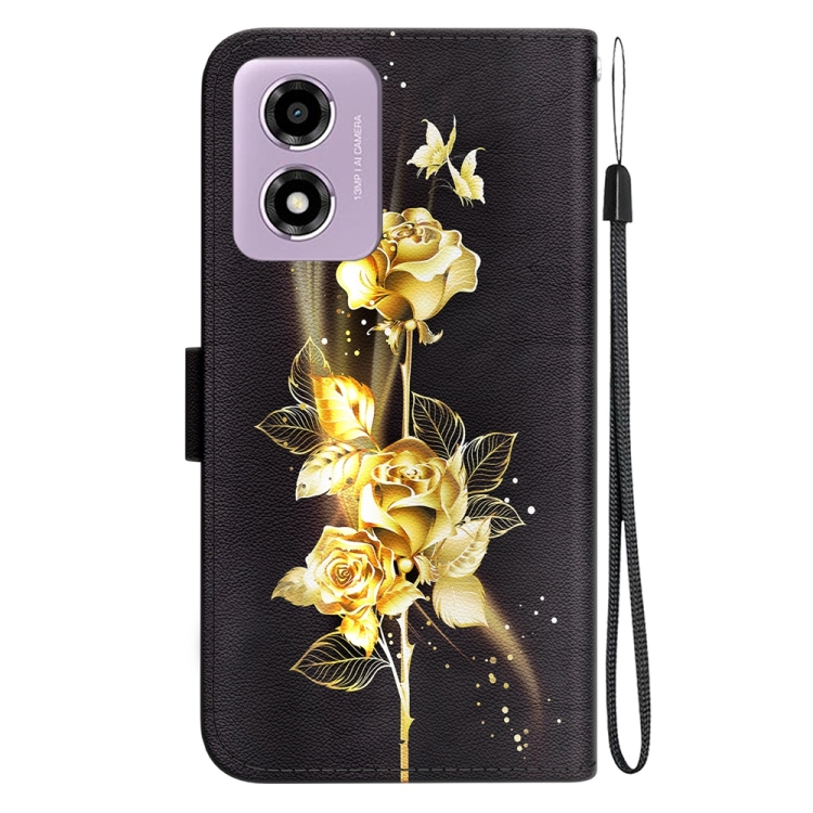 Funda para Motorola Moto G04S y Moto E14 de Cuero con Dibujo Coloreado y Textura de Cristal (Mariposa Dorada Rosa)