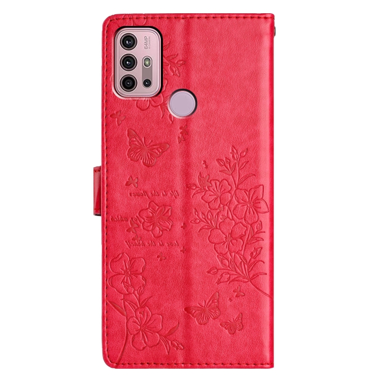 Funda de Cuero para Motorola Moto G10 / G20 con Mariposas y Flores (Rojo)
