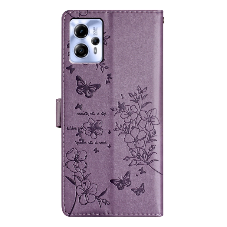 Funda de Cuero para Motorola Moto G13 y G23 con Mariposas y Flores (Púrpura)