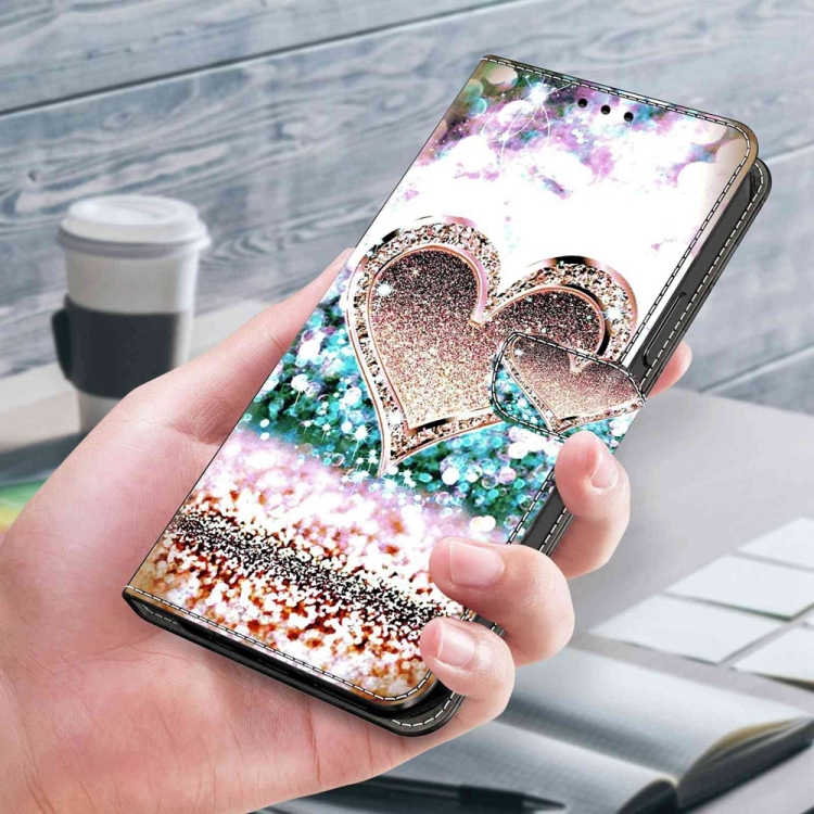 Funda Protectora de Cuero para Motorola Moto G14 Crystal 3D a Prueba de Golpes (Corazón de Diamante Rosa)