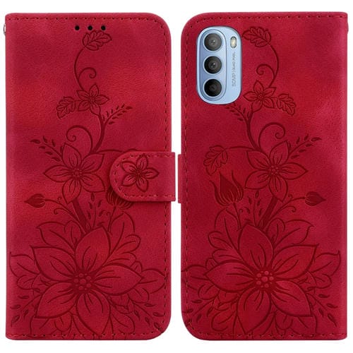 Funda para Teléfono Motorola Moto G31 / G41 Cuero con Relieve Lily (Rojo)