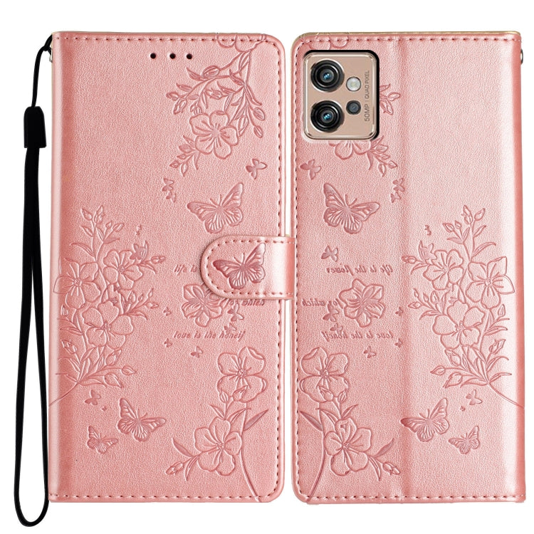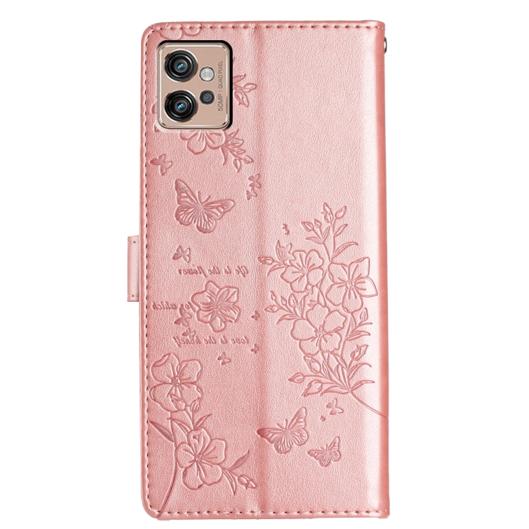 Funda de Cuero para Motorola Moto G32 con Mariposas y Flores (Oro Rosa)